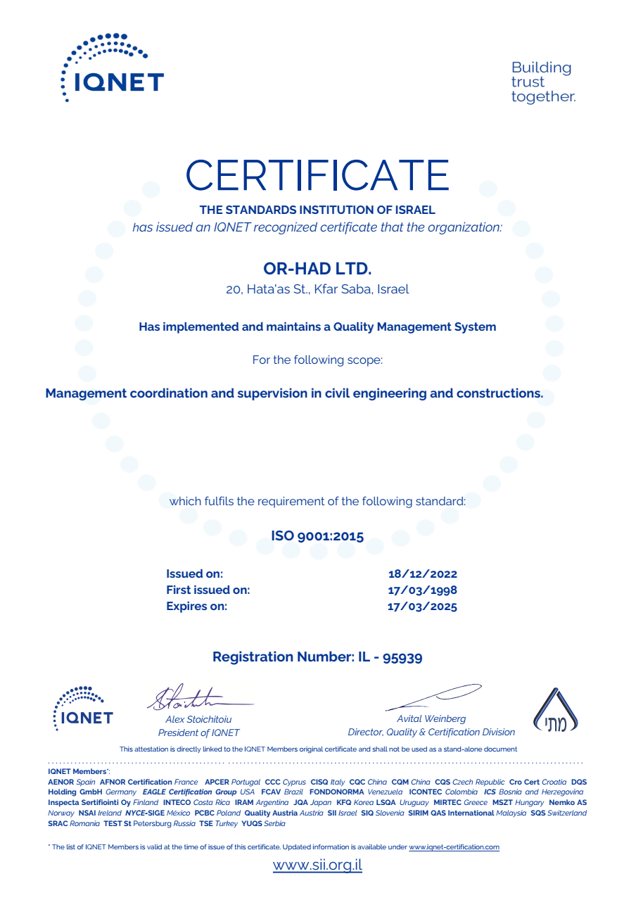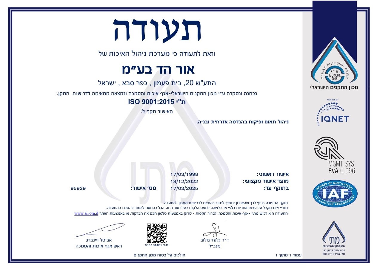 Our company is certified and operates as of March 17, 1998 in accordance with the standard ISO procedures.