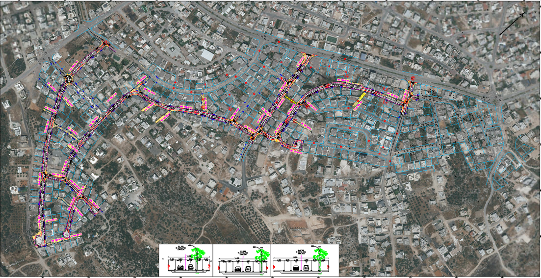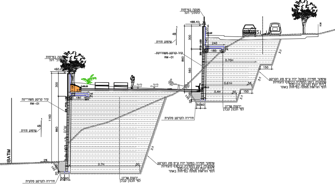 - סה"כ 2.5 ק"מ כבישים, עבודות סלילה ופיתוח, קירות תמך שונים: ק.ק.מ, קירות מסמרים, קירות רגל, פיתוח שצ"פ, ותשתיות תת"ק.